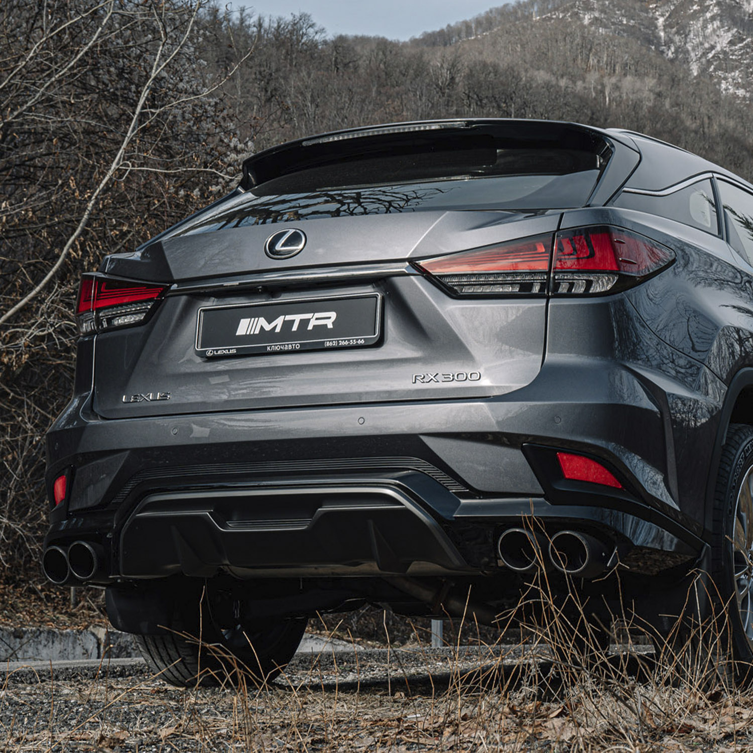 Задний бампер MTR Design кардинально преображает заднюю часть Lexus RX, делая образ автомобиля более спортивным, широким и современным. Выразительный дизайн с акцентом на выхлопную систему подчеркивает динамику и статус кроссовера.